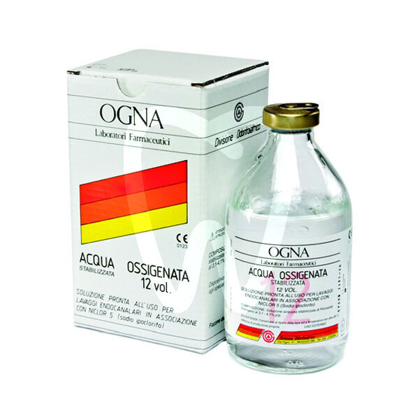30 days return guaranteeACQUA OSSIGENATA 12 V is a stabilized aqueous solution of Hydrogen Peroxide (approximately 3.6% w/w), supplied as a ready-to-use 250 ml format. Designed for clinical use in endodontics, it supports the rinsing and cleaning of root canals during instrumentation, leveraging its recognized oxidizing action. Used as an alternative to sodium hypochlorite, it releases oxygen actively to help flush canal contents.