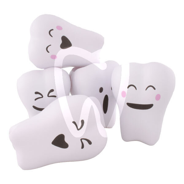30 days return guaranteeMolar-shaped anti-stress toy made out of polyurethane. Serves as distraction for patients during treatment. Measurements: 8 cm height x 6 cm width x 5 cm depth. Each package contains 5 units with different prints