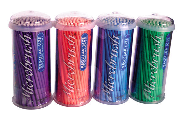 30 days return guaranteeBall micro-applicator featuring non-absorbent, non-linting fibre tips. Liquids are retained as small drops between fibres until they are applied. Microbrush® has a very bendable neck which provides access to any area. Supplied in a round dispenser: 4 colours x 100 units of each colour. Microbrush® Plus: longer, thicker handle for a better grip. Pack of 400 units in 4 colours and a 'one at a time' dispenser.