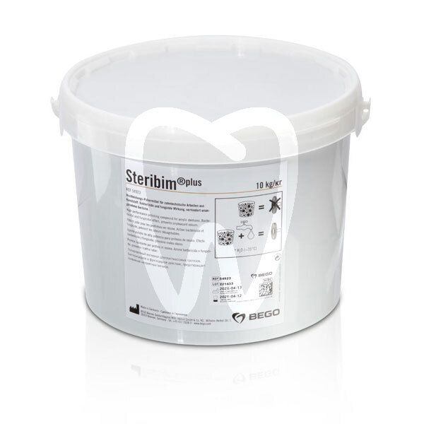 30 days return guaranteePIETRA POMICE STERIBIM PLUS 10 KG BEGO is a natural pumice polishing compound for dental laboratory use, designed for the finishing and high-gloss polishing of dentures and selected dental resin appliances. Supplied in a 10 kg format, it is intended as a polishing consumable within the category of abrasion consumables, polishing and burs. Steribim Plus features bactericidal and fungicidal action to help reduce bacteria and viruses during polishing, while not replacing standard hygiene measures in the dental laboratory.