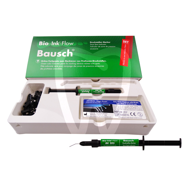 30 days return guaranteeBio-Ink®-Flow is a highly viscous, easy-to-apply, green paste for marking points, such as sore spots, on oral mucosa and determining their location on the denture.
