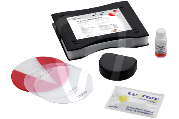 30 days return guaranteeDeep-drawing foils to produce sports mouthguards with integrated reinforcement in the sensitive anterior area. Two materials with different hardness degrees are combined in one deep-drawing foil. The width of the anterior teeth protection can be varied individually due to the V-shape of the harder inlay.