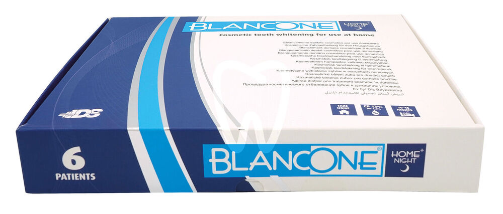 BLANCONE HOM+NIGHT MULTI KIT 6 PATIENTS is a take-home tooth whitening system designed for fast overnight use. Intended for dentist-supervised home bleaching protocols, it supports preventive and prophylaxis workflows by offering an at-home option to improve tooth shade as part of an overall cosmetic and hygiene plan.