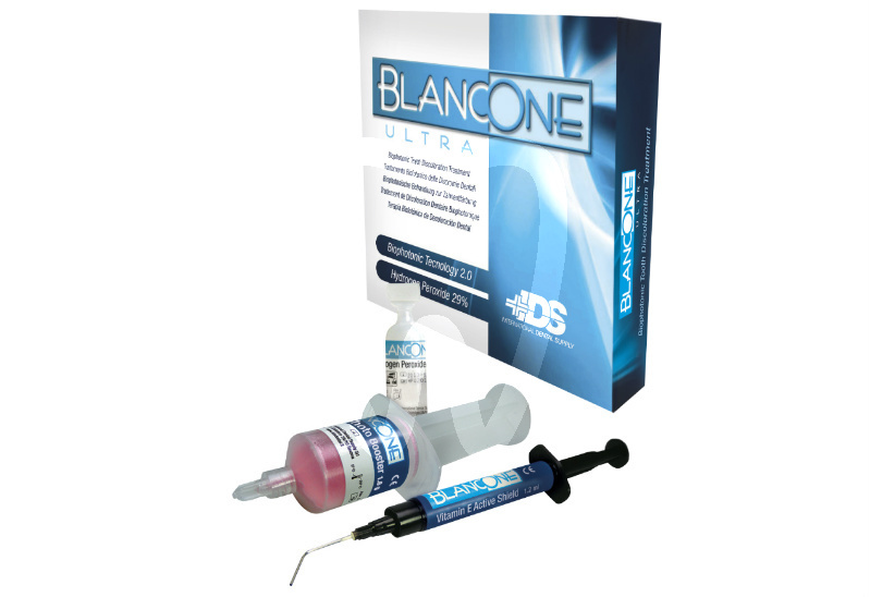 BLANCONE ULTRA WHITENING KIT is an in-office whitening treatment for prevention and prophylaxis protocols, designed to deliver rapid, deep whitening with a non-aggressive approach. Based on Biophotonic Technology 2.0, it enhances the whitening action by transforming hydrogen peroxide into a more reactive oxygen species (singlet oxygen), enabling an effective result in seconds rather than long chairtime sessions. The system is formulated to avoid enamel dehydration and excessive pulp-chamber temperature increase, helping achieve a natural and stable shade without the need for desensitizing agents.