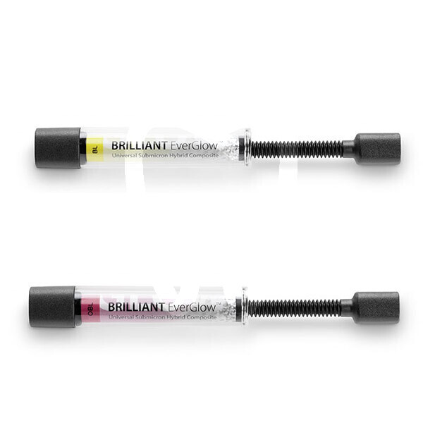 Brilliant EverGlow Refill Syringe: latest-generation universal submicron hybrid composite with outstanding polishability and excellent colour and gloss retention. Ideal for anterior teeth and good performance on posterior teeth. Available in either opaque or translucent shades.