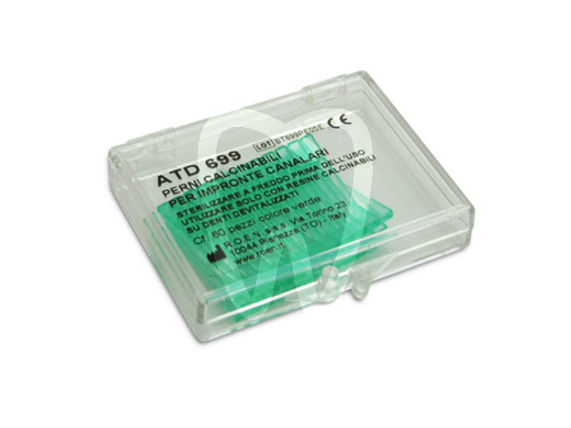 30 days return guaranteePERNI CALCINAB. VERDI 699 ROEN are retentive, serrated burnout posts designed for taking a canal pattern/impression and for core build-up with a direct technique. As a burnout (castable) product, they can be eliminated in the furnace during the casting process, supporting the creation of an individualized post-and-core restoration. Supplied in a box of 60 pcs.