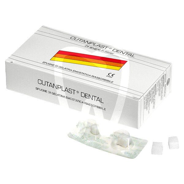 30 days return guaranteeCUTANPLAST is a sterile, absorbable, single-use hemostatic gelatin sponge in cube format, designed to support physiological hemostasis in clinical procedures. In the dental setting, it is used as an adjunctive local hemostatic to help control bleeding by adhering to the wound site and promoting clot formation. Sales format: 24 sponges in blister.
