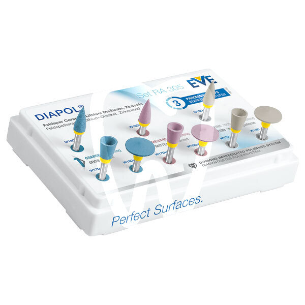 30 days return guaranteeDiamond polishers for ceramics. Three-step polishing system for all types of ceramic materials. Corrections can be made without the need for additional glazing. Blue - Coarse grain Pink - Medium grain Grey - Fine grain