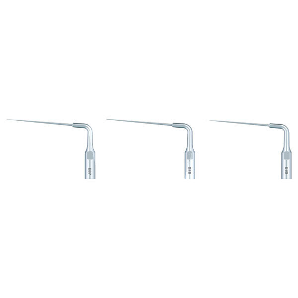 30 days return guaranteePUNTE E88 FOR REMOVAL OF BROKEN FILES × DR. YOSHI TERAUCHI WOODPECKER/EMS is an ultrasonic endodontic tip designed to support the retrieval of separated instruments from the root canal. It features an extremely thin, sword-shaped head intended to work under magnification and irrigation, activating ultrasound with the flat surface oriented toward the broken file on the inner canal wall. The tip can be pre-curved to match the degree of canal curvature, facilitating access in challenging anatomies. Sales format: 1 unit.