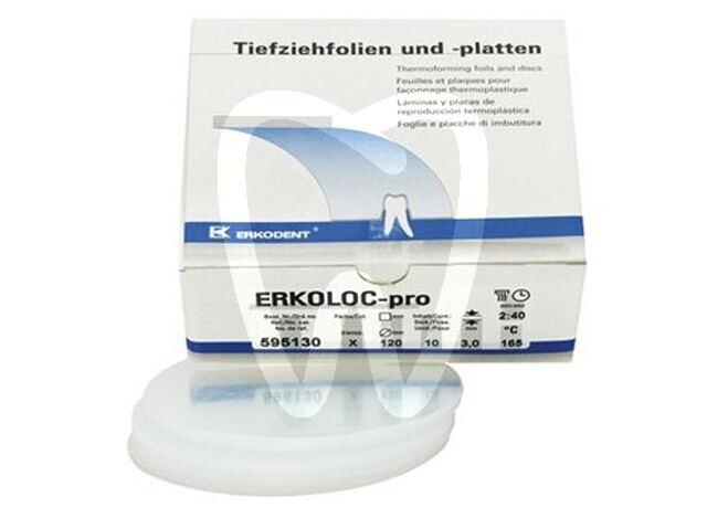 30 days return guaranteeERKOLOC PRO 120mm 2mm 10 pcs 595120 is a transparent, double-layer thermoforming disc designed for dental laboratory applications where both rigidity and comfort are required. Featuring a hard/soft structure with an insulating foil, it supports the fabrication of a wide range of removable appliances, including occlusal splints and clear orthodontic devices, offering a clinically reliable and patient-friendly finish.