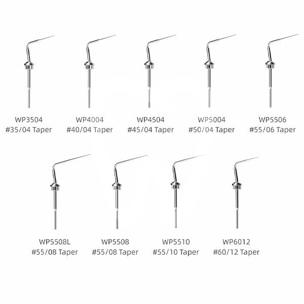 Indicated for endodontic obturation techniques requiring heated pluggers, such as warm vertical compaction and thermoplasticized gutta-percha procedures, when used with compatible Fi-P equipment. Suitable for clinical scenarios where precise heat application and controlled compaction are required in the root canal system.
