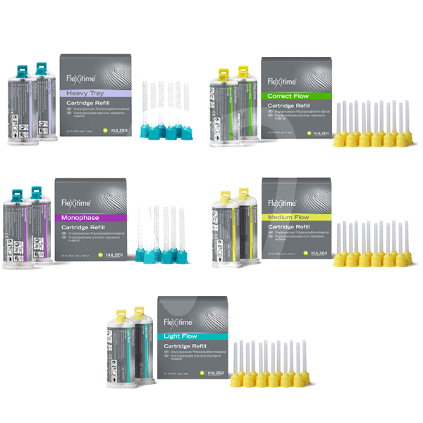 - Flexitime® Heavy Tray: Automix tray material with putty-like consistency. High final hardness.