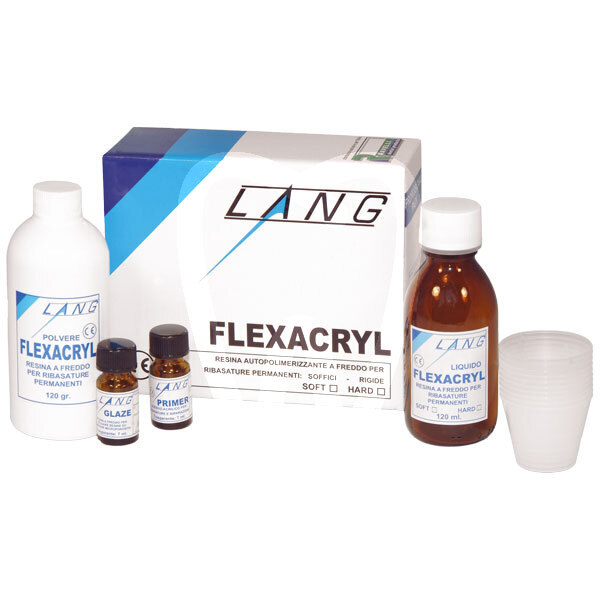 30 days return guaranteeFLEXACRYL PROFESSIONAL KIT HARD is a self-curing relining resin system for direct and indirect relines of removable dentures. As a long-standing reference material within chairside relining workflows, it is designed to help clinicians restore stability, retention and fit of mobile prostheses efficiently, supporting same-appointment treatment protocols without laboratory phases when clinically appropriate. This Professional Kit includes powder 120 g + liquid 120 ml + primer.