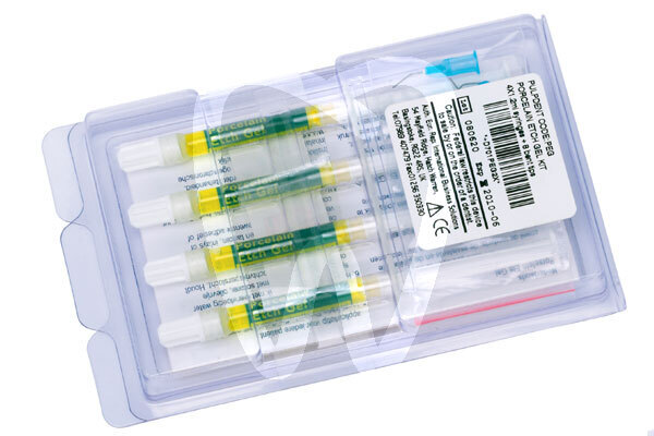 9.6% hydrofluoric acid applied for one minute to etch porcelain crowns, veneers, inlays and fractured porcelain surfaces before applying adhesive. Does not stain porcelain, composites or resin cements.