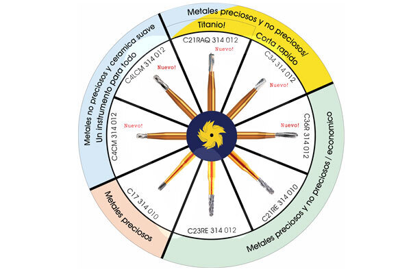 New Horico® burs cut crowns made from all materials. Meticulous manufacture ensures: - Better cutting. - Long life. - Reduced vibrations. - Easy to notice thanks to their gold colour.