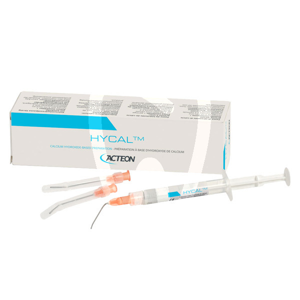 HYCAL is used as a liner/base in conservative dentistry for direct and indirect pulp protection, including situations of pulp exposure and after pulpotomy. It is also indicated as a temporary intracanal filling material during endodontic treatment phases when an interim seal is required.