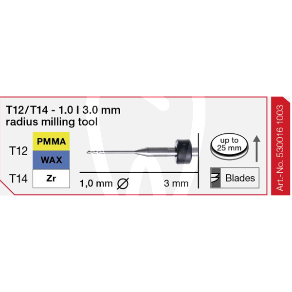 30 days return guaranteeFRESA IMES 3MM T12/T14 1.0MM 530016 1003 is a milling bur designed for Imes milling systems used in dental CAD/CAM laboratory workflows. Supplied as 1 unit, it supports precise material processing during the CAM milling stage, helping labs execute consistent milling strategies according to the selected job and material.