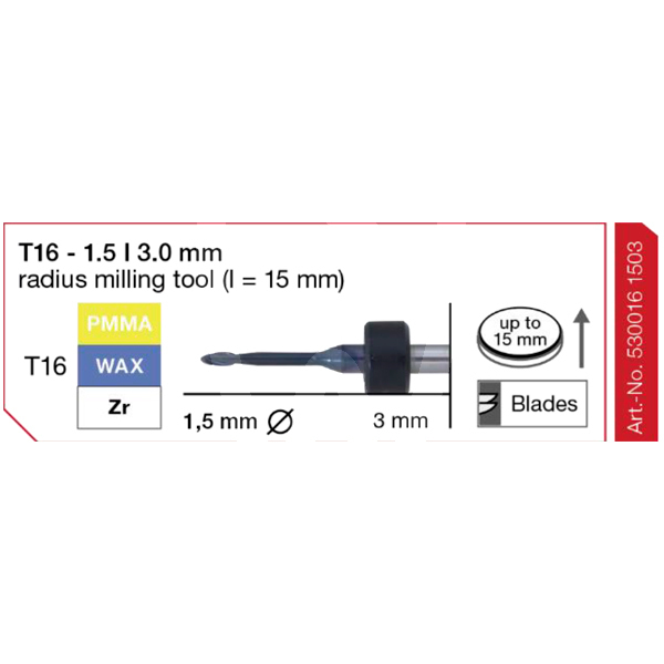 30 days return guaranteeFRESA IMES 3MM T16 MM 530016-1503 is a milling bur designed for Imes milling systems, intended for CAD/CAM laboratory workflows. It is used as a consumable tool in milling units to support precise, repeatable machining of dental restorations and components within the indications and material compatibility specified by the milling system and the tool manufacturer. Sales format: 1 unit.