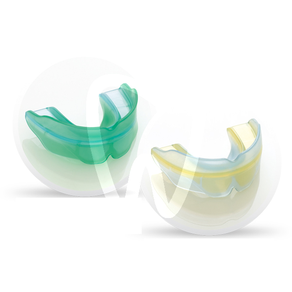Children from 6 years. 3 sizes: small, medium and big. First combined appliance, thanks to an innovative and patented manufacture process, with 2 different densities in the same material: this appliance joins the flexibility in the fragile sides (lips and tongue) and the stiffness in the dental arches. The association of two densities in one material eliminates the break risks. Available densities: soft/medium or medium/hard. This appliance allows the stabilization of a nasal ventilation, and the soft side protects lips from injuries. The dental arches, stiffer (medium or hard) limite the deformations of the splint to optimize the development and the stabilization of the occlusion. The maxilar arch confines the mandible arch. It helps with the Class II correction.