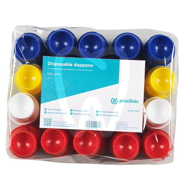 30 days return guaranteeDisposable, plastic dappen dishes. Can be fitted to metal trays via a groove or folded over when held in the hand.