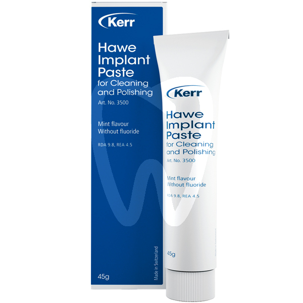 This special prophy paste has been developed for efficient and gentle maintenance of implants. With a fresh mint taste and fluoride-free, this pumice-free paste is ideal for application after the use of implant deplaquers to remove biofilm deposits. The selected formula and low RDA of 10 enable regular cleaning of the implant surface without damaging it. The result will impress even the most demanding professionals as the paste guarantees excellent cleaning of the implant surface and will therefore slow down re-accumulation of new deposits, increasing the service life of the implant.