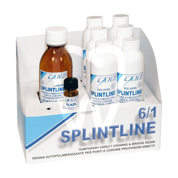 30 days return guaranteeSPLINTLINE KIT 6/1 LANG is a cold-cure, self-polymerizing acrylic resin designed for the chairside fabrication of temporary crowns and bridges. Intended for use in prosthetics procedures within the clinic, it supports fast direct provisionalization and relining workflows, helping clinicians produce functional, aesthetic temporaries during restorative treatment phases.