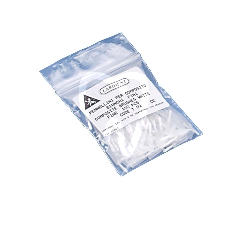 30 days return guaranteePENNELLINI X COMPOSITO FINE BIANCHI T92 are fine white, dismountable brushes designed to support composite layering procedures during direct restorative treatments. Supplied as a 100-unit pack, these white nylon brushes help the clinician handle, adapt and refine composite increments with controlled application in routine restorative workflows.