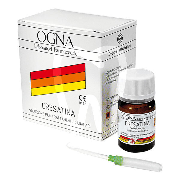 30 days return guaranteeCRESATINA (15 g) is an endodontic solution indicated for root canal treatments prior to definitive obturation. Formulated with 100% m-cresyl acetate, it is intended to support canal wall conditioning during the pre-filling phase by leveraging its vapor action in contact with the canal surfaces.