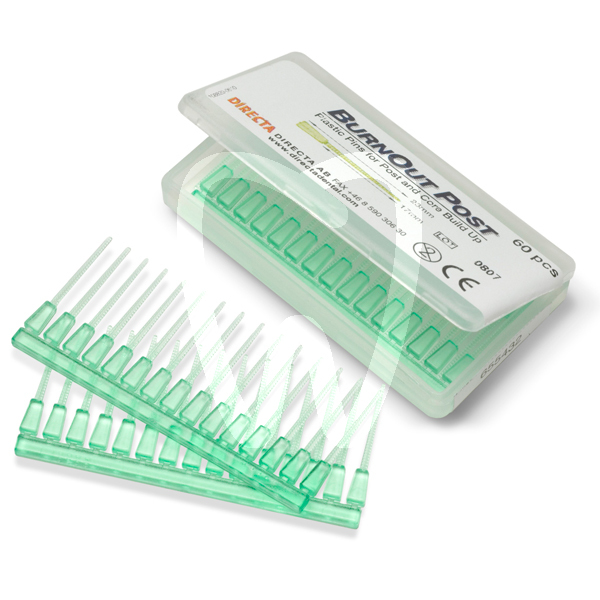 Quick and economical method of perfecting cast posts and cores. Made in a special plastic which burns out to leave no residue, thus avoiding casting porosities. The roughened, inverted cone head is designed to act like a key in the impression, preventing detachment when removed from the mouth.