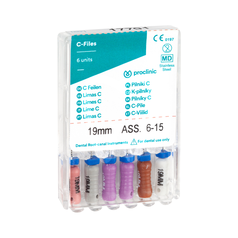 Lime C Assorted No.06-15 (19mm) are manual endodontic files designed for canal patency and initial instrumentation of root canals prior to using conventional hand files or rotary systems. They support apical third negotiation and help with locating root canal orifices during early shaping and scouting phases. Supplied in a 6-unit assortment with selected ISO sizes for clinical flexibility.