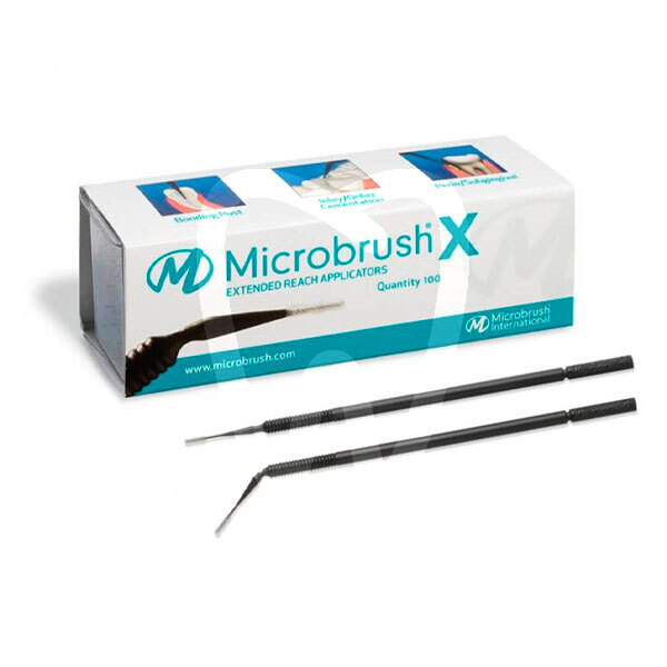30 days return guaranteeThe most recent member of the Microbrush® family. Designed with a thinner, longer tip to simplify application in confined spaces, such as when placing bonding agents, fillings, veneer cementation and especially during root canal treatments. Shorter, stiffer fibres hold a fraction of a drop of material for accurate placement and also enable scrubbing. The applicator can be bent and maintain its position at angles of up to 90°. The Microbrush® X kit includes a cartridge of 100 applicators and a “one at a time” dispenser.