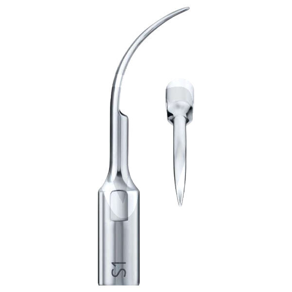 30 days return guaranteeMECTRON GOLD TIPS: tips for scaling, periodontics, endodontics, microsurgery and restorative dentistry (these tips are also compatible with EMS appliances). Made of titanium nitride. S1 tip: universal semicircular curette for scraping large areas on all tooth surfaces in the case of healthy or slightly damaged periodontium. 2. S2 tip: triangular scraper with a slightly rounded upper surface. Recommended for posterior areas and interproximal spaces. 3. S6 tip: highly effective tip thanks to its slight angle from the direction of insertion which double the intensity of the ultrasonic vibrations. Thanks to its high power, it is ideal for rapidly eliminating large areas of tartar or plaque.