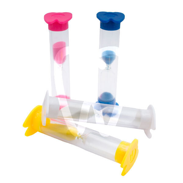 30 days return guaranteeHourglass designed for children to learn to measure the time of brushing their teeth in a fun way. The ends of the clock are made up of two plastic teeth.