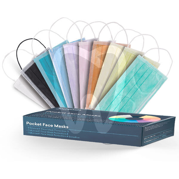 30 days return guaranteeAssorted Monoart facemasks: 8 PTC3 Masks, 1 PTC4 Mask (black), 1 PTC4 Sensitive Mask