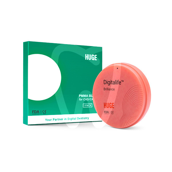 30 days return guaranteeHUGE PMMA Pink Disc 30 mm is a CAD/CAM laboratory disc made of pink PMMA, designed for the digital fabrication of denture bases. It provides dental laboratories with a reliable digital material option to support efficient CAM milling workflows, offering a natural gingival look and feel for prosthetic applications.
