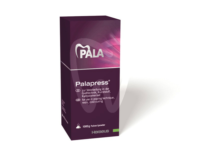 30 days return guaranteePALAPRESS Pink Veined Powder 1 kg is a dental laboratory acrylic resin powder (pink veined shade) designed for fast, straightforward processing in a wide range of prosthetic workflows. It is suitable for completing metal frameworks, producing denture base relines, and carrying out repairs, providing an efficient routine for daily lab production. The reduced residual monomer content supports excellent mucosal compatibility, making it appropriate for applications where patient comfort and tissue tolerance are critical.