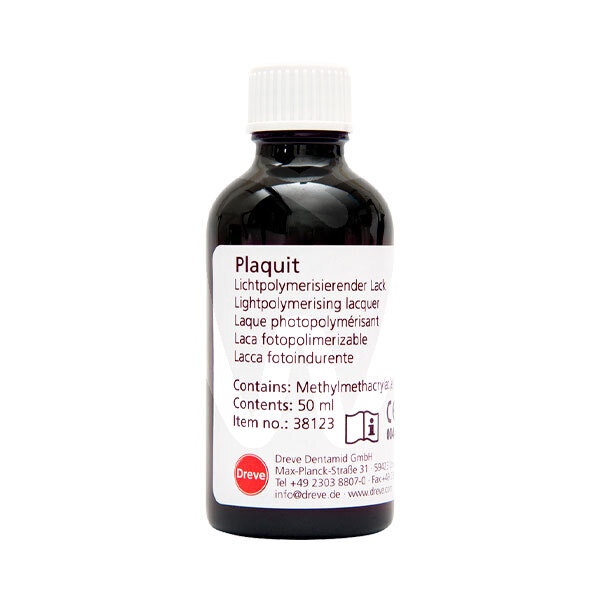 30 days return guaranteePLAQUIT Light-Curable Varnish is a single-component, peroxide-free (no benzoyl peroxide) photopolymerizable varnish designed for versatile use in the dental laboratory. It is intended to coat and protect plastic structures such as bite splints, plastic parts of partial and full dentures, and temporary plastic elements used in crown & bridge workflows. Curing is performed in light-curing devices operating within a 300–400 nm spectral range, such as EyeVolution®. Sales format: 20 ml.