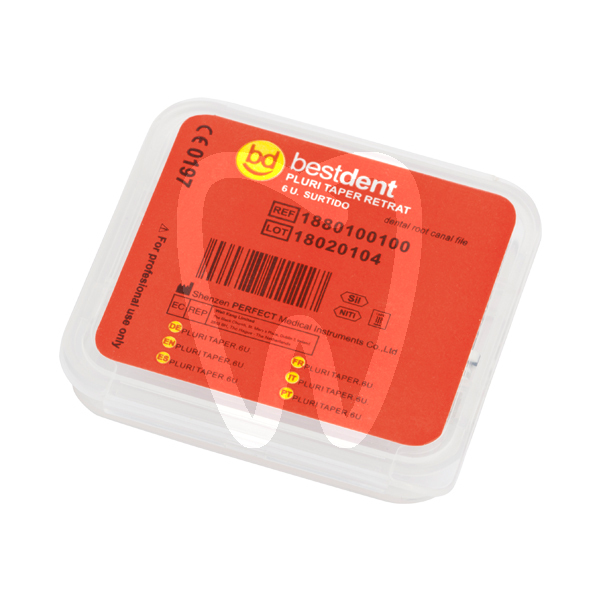 30 days return guaranteePluri Taper retreatment files for the removal of the root filling before re-preparing the conduit for a re-endodontics. Complete system of three files, with three lengths and three progressive tapers, to act in different thirds of the root canal. Non-sterile, sterilizable at 134º.