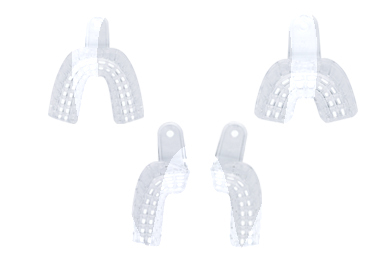 Rigid, transparent plastic. Feature ribbing which makes them as rigid as metal trays. Anatomically correct. For all types of materials.