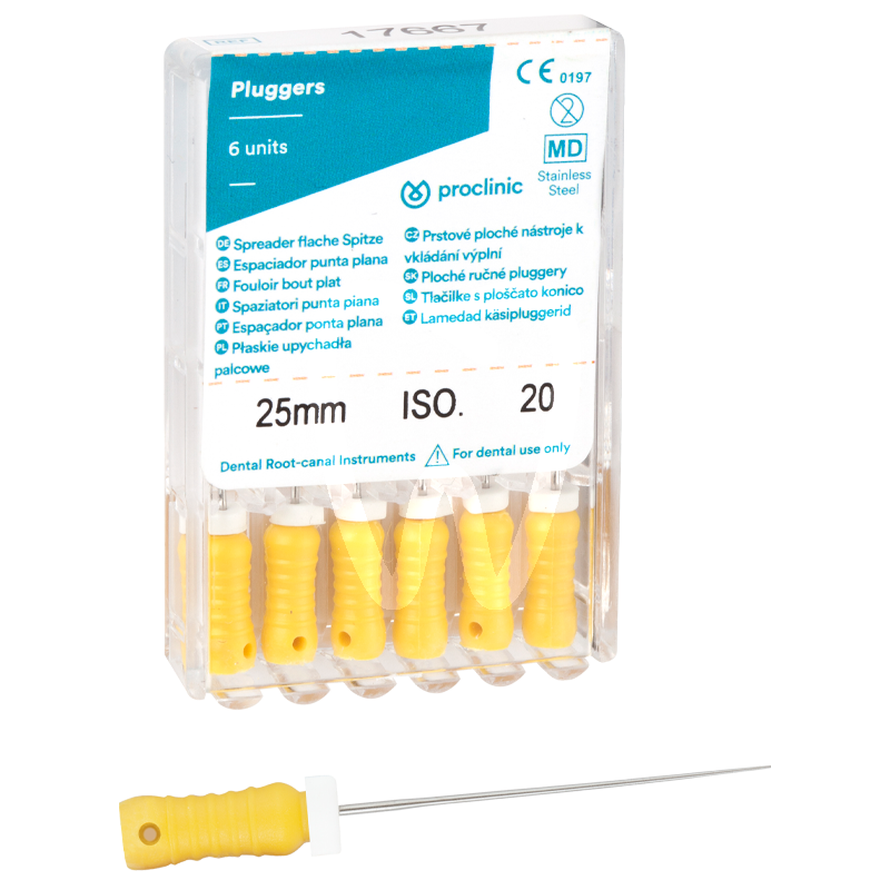 30 days return guaranteeFINGER SPREADER FLAT TIP No.25 - 25 mm is a manual endodontic finger spreader designed for lateral and vertical condensation of gutta-percha during root canal obturation. Its flat tip profile supports controlled compaction in the canal, helping clinicians achieve a dense, well-adapted fill as part of routine endodontic treatment protocols. Supplied in a 6-unit pack.