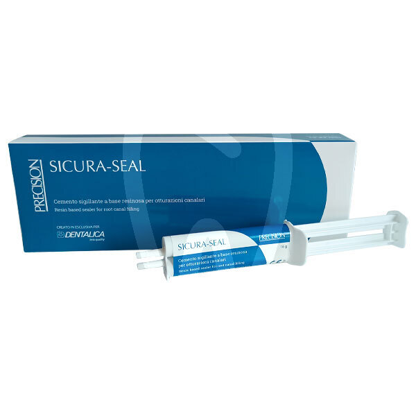 30 days return guaranteeSICURA SEAL Resin Sealer Cement is a resin-based endodontic sealer designed for the obturation of permanent teeth root canals in combination with gutta-percha cones. Supplied in a 13.5 g syringe with 1 spatula, it is intended to support root canal filling procedures by sealing the canal system as part of standard endodontic obturation protocols.