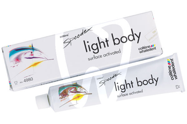 30 days return guaranteeSpeedex® is the first C-silicone material with snap set and A-silicone qualities. A new DCP formulation (Dimension-Controlling Precondensate, developed by and exclusive to Coltene) gives a highly elastic, dimensionally stable material with high precision. Unlike other C-silicones, models can be cast up to seven days after impression taking. In conventional C-silicones shrinkage is produced by the evaporation of some compounds, such as alcohol, during setting. Speedex®’s exclusive DCP formula considerably reduces alcohol loss by transferring part of the ester interchange reaction to the manufacturing process. This “precondensation” process means that impressions taken with Speedex® maintain their dimensional stability for days. Time-saving: Thermosensitive technology. The Speedex® formula incorporates thermosensitive elements which react rapidly to the temperature difference between the the external environment and the mouth. The resulting “snap set” increases patient comfort and guarantees a perfect impression. You can choose the setting time to suit your technique by adjusting the amount of activator used and Speedex® will provide an almost instantaneous snap set. The Speedex® activator is used for both the Putty and Light Body. The surfactant molecules in Speedex® Light Body migrate to the surface so they may be in contact with moisture. This process reduces the contact angle and produces a greater reproduction of details in both the impression and the model.