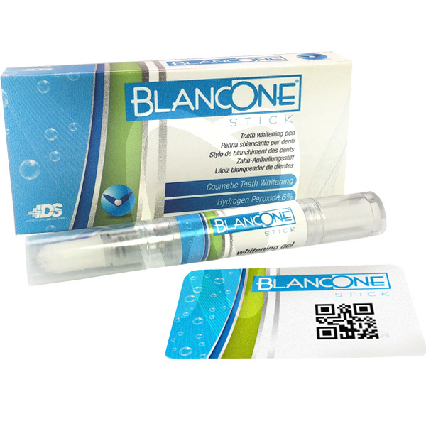 BlancOne Touch gel contains two components which together form a mixture that is easy to apply thanks to its consistency and adhesive properties. Treatment is based on 3-4 applications/cycles during a single session, which involves application and removal of the gel several times. Easy and comfortable whitening with immediate results. The kit includes the BlancOne Stick, a home maintenance pen that stabilises and enhances the shade of white achieved.