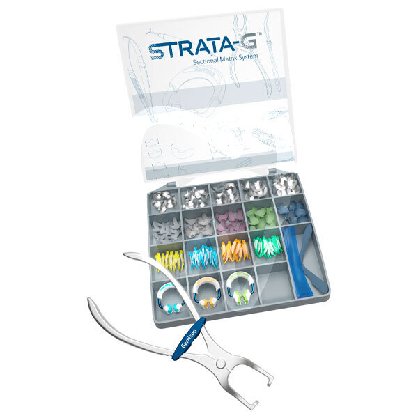 30 days return guaranteeThe ALL IN ONE STRATA-G Kit is an all-in-one sectional matrix system designed for predictable Class II restorations. In this kit, the sectional matrix bands provide proper proximal anatomy, while the three-ring design delivers the required tooth separation and band adaptation to achieve a natural, tight contact. As part of the wedges and matrices category for clinical use, it supports efficient placement and controlled contouring during posterior composite procedures.