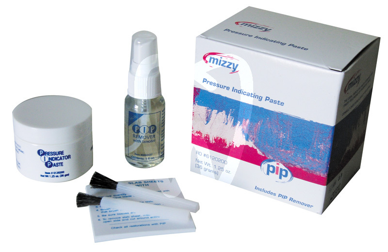 30 days return guaranteePASTA P.I.P. 36 g MIZZY is a silicone paste designed to identify premature contact points during occlusal checking in removable and provisional prosthodontics. It helps clinicians visualize and locate pre-contacts on complete dentures, partial dentures, and temporary restorations during chairside adjustment procedures. Supplied as a 36 g jar with solvent, it is intended for professional dental use in routine clinical workflows.