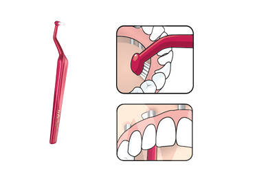 30 days return guaranteeAn innovative brush with an angle specially designed to access the lingual and palatal side of the implants. Small oval head with long filaments. Medium texture. Ergonomic handle. It resolves with maximum functionality a point of difficult access for patients wearing implants or prostheses on implants. Assorted colors.