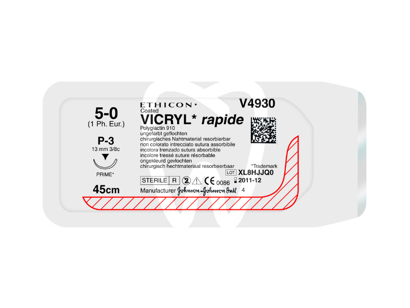 30 days return guaranteeSUTURA VICRYL RAPID W9930 4/0 (pack of 12 units) is a synthetic absorbable suture intended for soft-tissue approximation in clinical and dental surgical procedures where rapid resorption is desirable. Supplied pre-mounted on a 3/8 circle FS-2 needle, it supports controlled tissue closure in routine oral surgery and periodontal interventions.