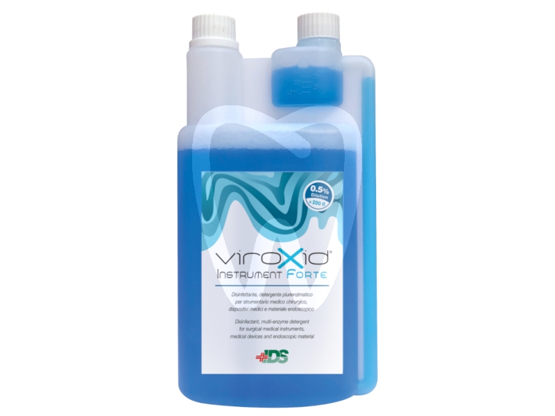 30 days return guaranteeVIROXID XSTRUMENT FORTE FL. 1 LT. is a concentrated disinfectant and detergent formulated with biocidal agents and a multi-enzymatic system for the high-level reprocessing of dental and medical instruments. Designed for routine clinical use, it supports effective cleaning and disinfection of surgical instrumentation, medical devices and endoscopic materials. The formulation is aldehyde-free and chlorine/chloride-free, with neutral pH, making it suitable for frequent use within professional decontamination workflows.